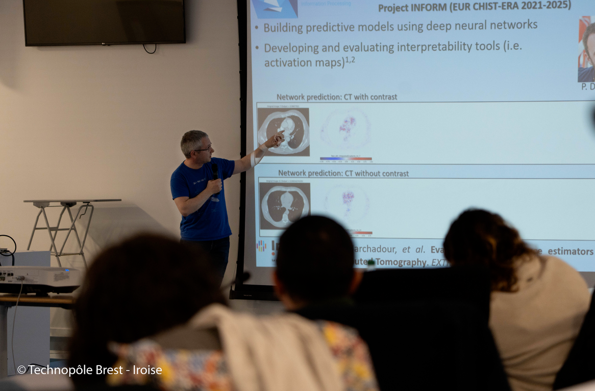 Mathieu Hatt est directeur de recherche à l’Inserm au LaTIM. Il utilise l’IA pour des applications en oncologie. Il s’intéresse en particulier aux cancers rares ou des sous-groupes de patients, pour lesquels il existe peu de données d’apprentissage pour entraîner les modèles. "Sur des bases de quelques dizaines à quelques centaines de patients seulement, le concept est d’ajuster le nombre de paramètres considérés par le réseau de neurones", explique le chercheur avec pédagogie.